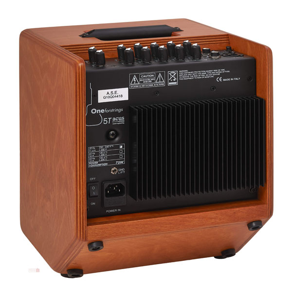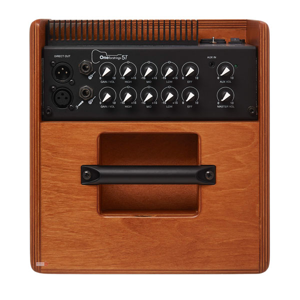 Acus One Forstrings 5T Wood Cut sở hữu 2 kênh riêng lẻ bao gồm Input Microphone và Line với các nút tùy chỉnh Gain/Volume, High Middle, Low, Effects và Master Volume. Cổng AUX dùng để kết nối mở nhạc hoặc metronome cùng với nút tùy chỉnh Volume cho AUX. Cuối cùng là cổng Balance Out cho ra dàn âm thanh lớn hơn.