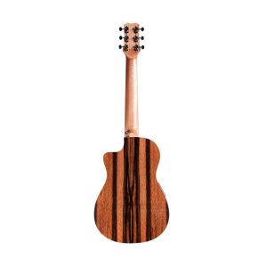 Say hello to the Mini II EB-CE — our popular Mini travel-size guitar, but slightly bigger and with an extended 580mm (22 7/8”) scale length so it tunes perfectly to Standard E. Despite its small profile, the Mini II has a deeper body depth which creates a well-rounded tone that is close to a full-size nylon string guitar. Built with a solid spruce top and striped ebony back and sides, the Mini II EB-CE is resonant with a clear, defined tone. Another stand-out feature is its cutaway for reaching the uppermost frets with ease and a Córdoba pickup with on-board tuner so you can amplify on the go.