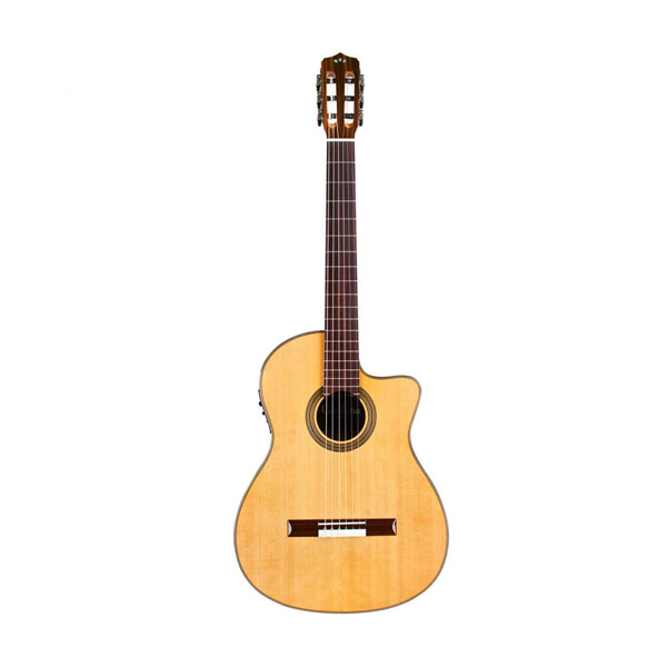 Cordoba 12 Natural với mặt trước được làm từ gỗ Solid Western Red Cedar nguyên tấm mặt trước, lưng và hông là gỗ Gụ Mahogany Châu Phi (Africa Mahogany), tích hợp EQ Fishman cho âm thanh ấm áp vang xa